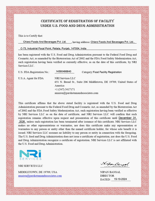 We are FSSAI License holder and ISO-22000 Certified. We also have US FDA registration.