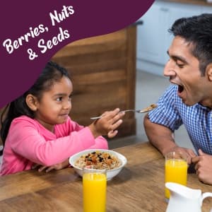 - HIGH IN PROTEIN & DIETARY FIBRE: Wheafree Muesli is high in dietary fibre and protein due to the presence of super millets like Quinoa, Sorghum, Pearl Millets, Amaranth and Rice. The high fibre lowers the cholesterol and glucose levels which helps in improving the digestive system, lowers the risk of high blood pressure, cardiac diseases and gives you the required nutrients to stay active. Wheafree Muesli keeps you full for longer, prevents unwanted cravings, and helps you maintain an optimal weight.
