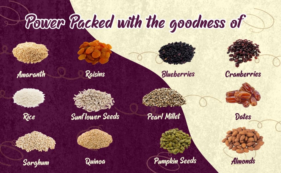- HIGH IN PROTEIN, VITAMINS, MINERALS AND MICRONUTRIENTS: Wheafree Muesli is loaded with Proteins, Vitamins, Minerals and Micronutrients as it contains Quinoa, Sorghum, Amaranth and Pearl Millets. It is a complete protein containing all nine essential amino acids. Proteins supply the body with energy and the Vitamins, Minerals and Micronutrients aid in cell regeneration.